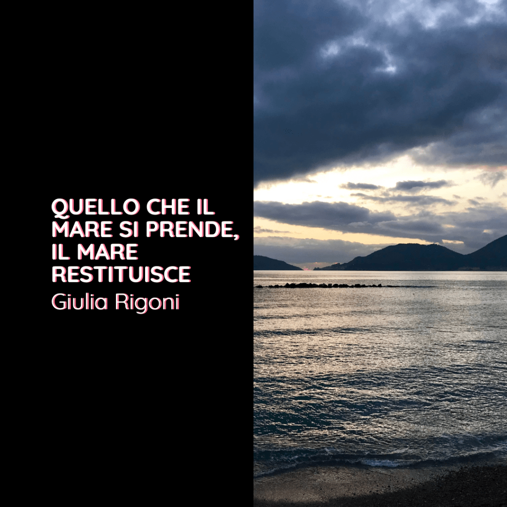 Un’onda mi travolge: la testa cade all’indietro, i capelli si bagnano, la schiena si sdraia, le orecchie si tappano. Galleggio sull’acqua blu scuro come Cristo in croce e lascio che il mare mi porti con sé, ché tanto, quello che il mare si prende, il mare restituisce. Me l’hai insegnato tu; questo, come la fermezza del non scendere a compromessi. Io non sono come te però, non sono te. Ma non ti sarai sacrificata invano, vedrai. Dall’unico scorcio di cielo ancora chiaro si diffonde un fascio di luce, che mi avvolge e mi riscalda. Sono pronta: che sia fatta la Tua volontà.